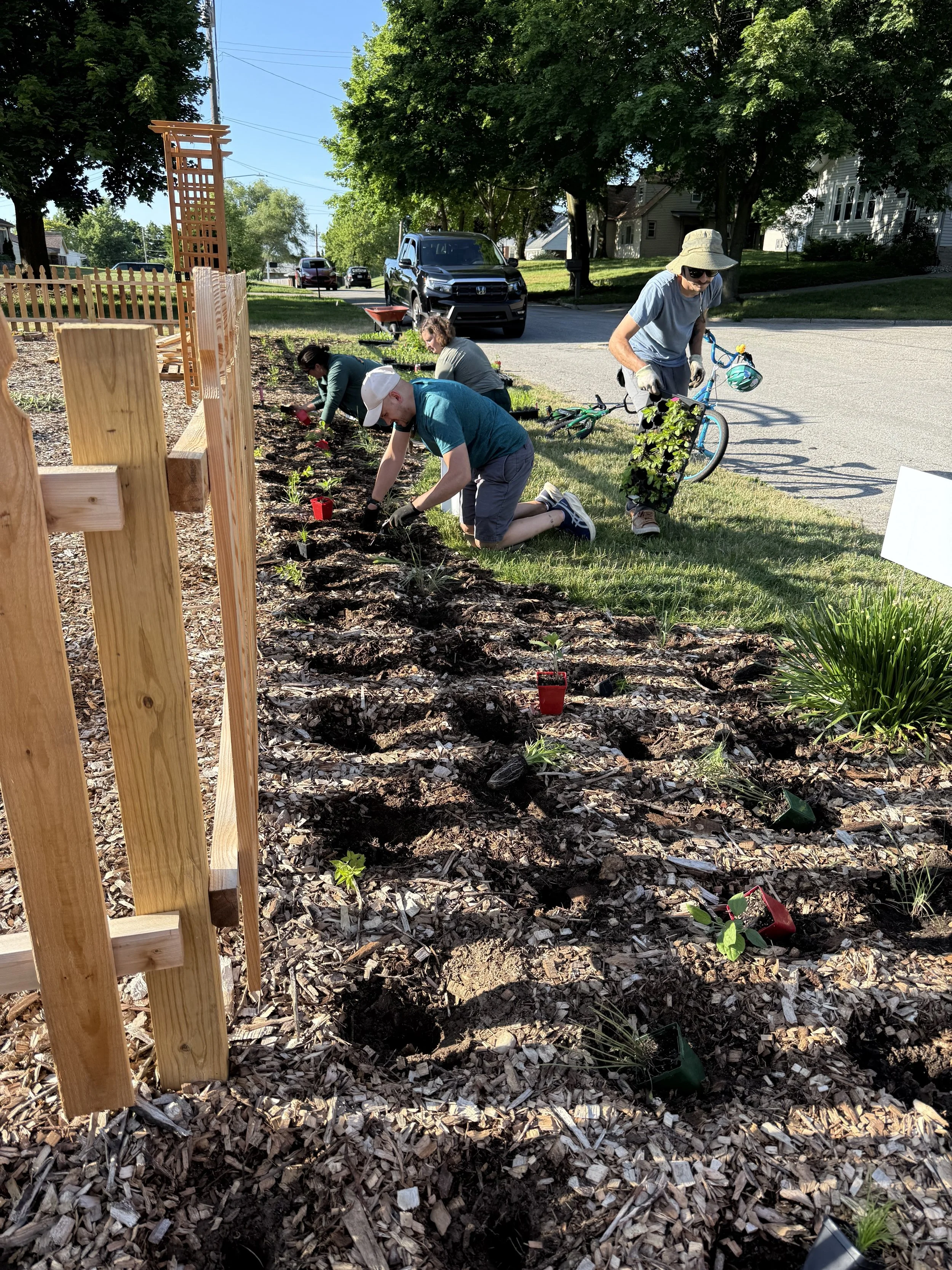 Participants join a two-year partnership that includes garden design support, plants, education, and community workdays. Some gardens are fully installed with volunteer support, while others receive DIY garden kits paired with guidance and resources. Every participant contributes by showing up for at least one fellow garden installation, helping grow a network of neighbors learning and working together.